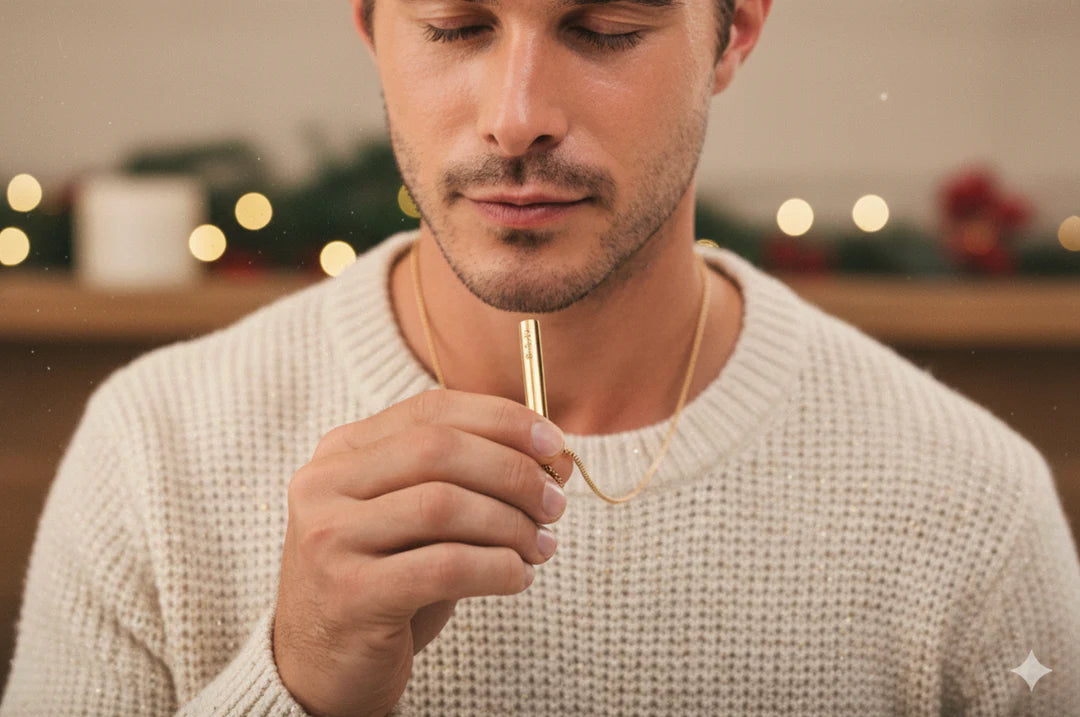 The Shift es el primero de su tipo, así que podemos apreciar la confusión inicial. Nos inspiramos en una técnica de respiración con pajita comprobada para calmar silenciosamente la mente, pero queríamos diseñar algo más práctico y que se usara como un compromiso de respirar mejor. Utilizamos acero inoxidable 316 de grado médico con colores de metales preciosos cocidos para que pueda usarse de forma segura todos los días. También probamos y patentamos la longitud y el diámetro del tubo para crear exhalaciones ideales que fisiológicamente desencadenen la calma. Definitivamente podrías usar una pajita, pero encontramos que el tamaño aleatorio puede ser ineficaz y aplanarse en tu bolsillo. Llevar The Shift como un collar es un compromiso de respirar mejor como un hábito diario, lo que te hace sentir mejor siempre que necesites un respiro.